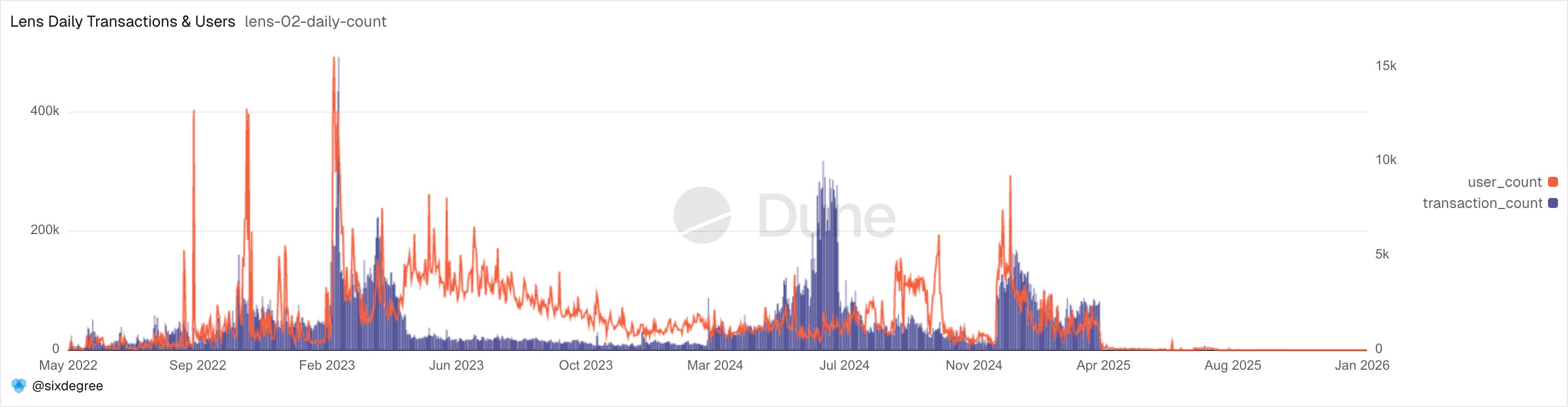 PS: The Lens graph shows Polygon activity only. The drop to zero reflects the migration to Lens Chain, not user abandonment.